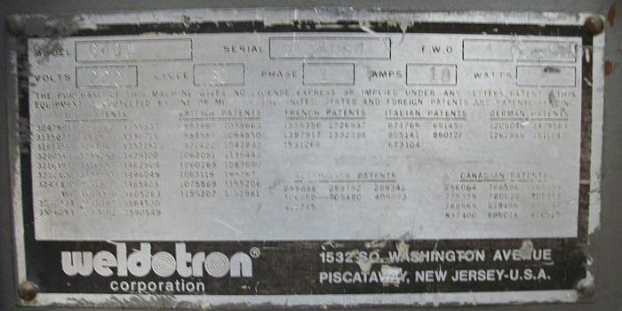 (3) Weldotron model 6401 semi automatic L-Bar sealer, 20" x 17" hot wire type seal area with belt take-away conveyor size 16" x 19". Unit has timer and temperature controls, set for single phase, 220 volt. Serial numbers B064364, 6021864 and IN799464.