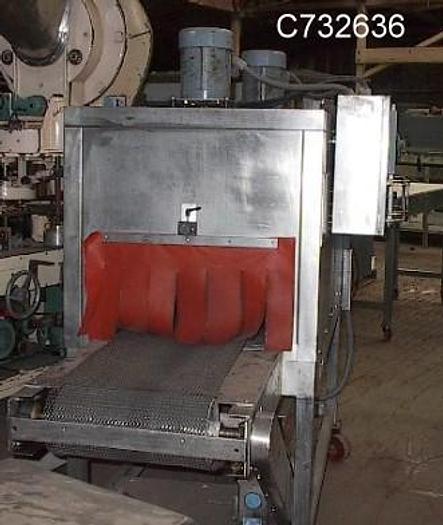 Shanklin Shrink Tunnel - Features a 15” wide stainless steel mesh belt and an 18” W x 11” T x 61” L chamber. Includes circulating fan. Portable on wheels.