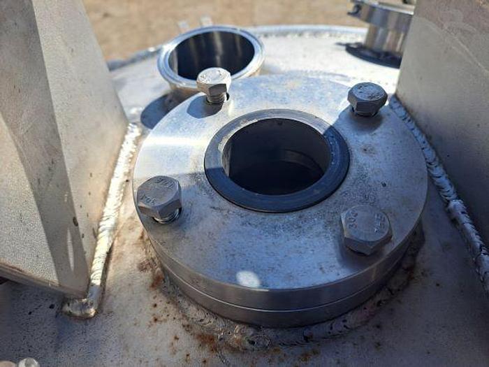 Lee Industries Jacketed Tank, Model 100U7S, 100 Gallons, 316 Stainless Steel, Vertical. 30" Diameter x 35" straight side. Domed top and dish bottom. Jacket MDMT -20 PSI at 125 degrees Fahrenheit. Openings top: (1) 8" hinged lid with 3" tri-clamp (1) 6" flange type, (1) 3" sight glass (2) 3" (3) 2",(1) 1-1/2" tri-clamp, 3" Center bottom outlet. tri-clamp. Mounted on 3 stainless steel pipe legs. Serial number B7544E, National Board number 5508. New in 1992. Tank was modified and is no longer rated for internal pressure. Originally designed for Internal MAWP 50 PSI at 350 degrees Fahrenheit. Jacket MAWP 125 PSI at 350 degrees Fahrenheit. Internal MDMT -20 PSI at 50 degrees Fahrenheit.